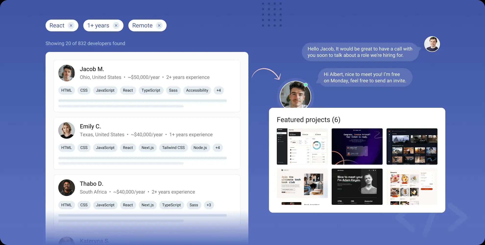 Use advanced search filters to quickly find developers who match your exact criteria—saving you time and letting you focus on the best candidates first.