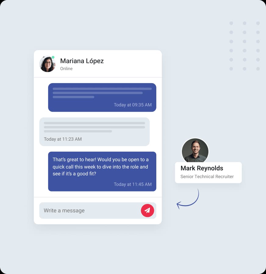 - Direct messaging: Reach out to potential hires instantly—no more waiting on slow email exchanges.